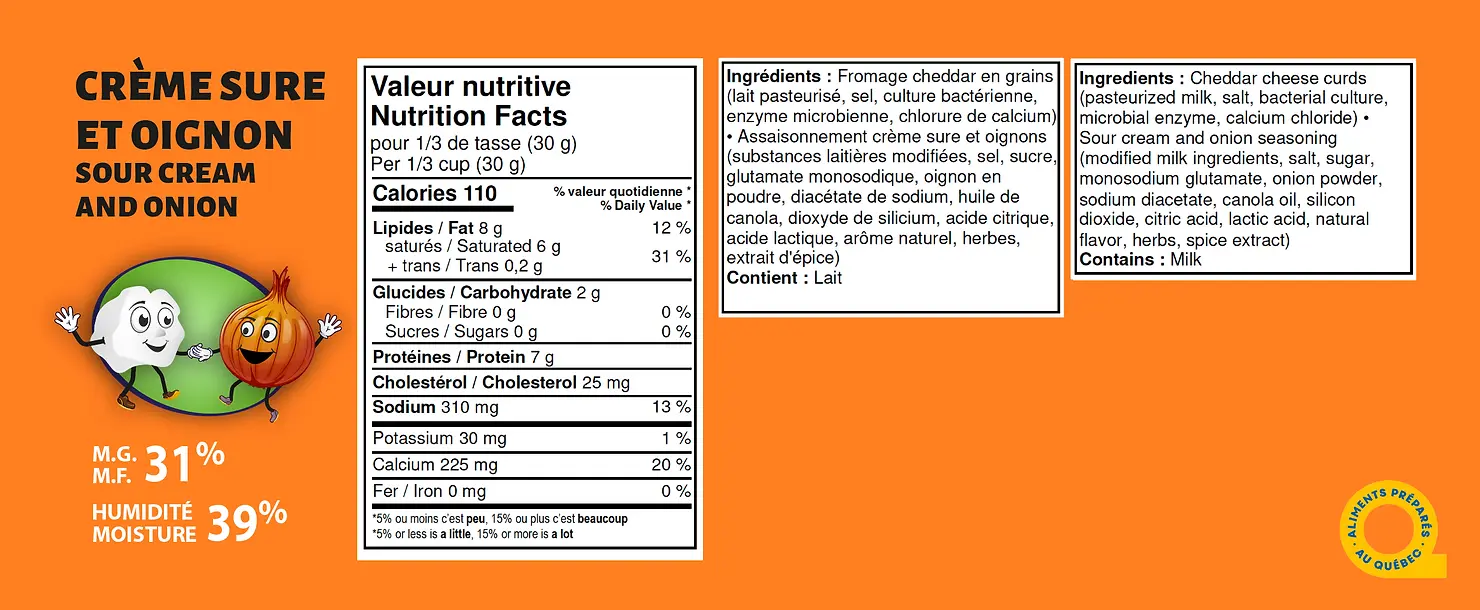 Fromage en grains qui vous ferons penser aux chips crème sûre et oignon.
