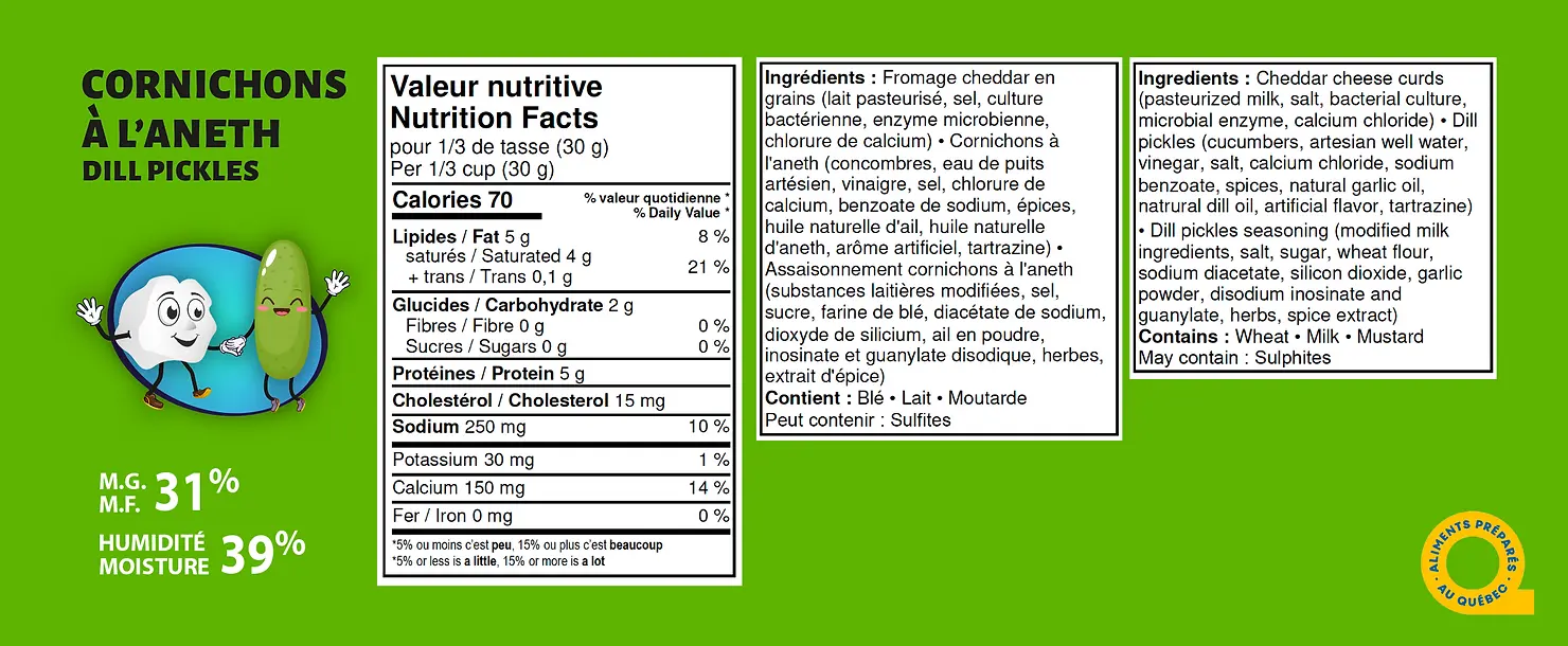 Fromage en grains aux saveurs de vrais cornichons à l'aneth.